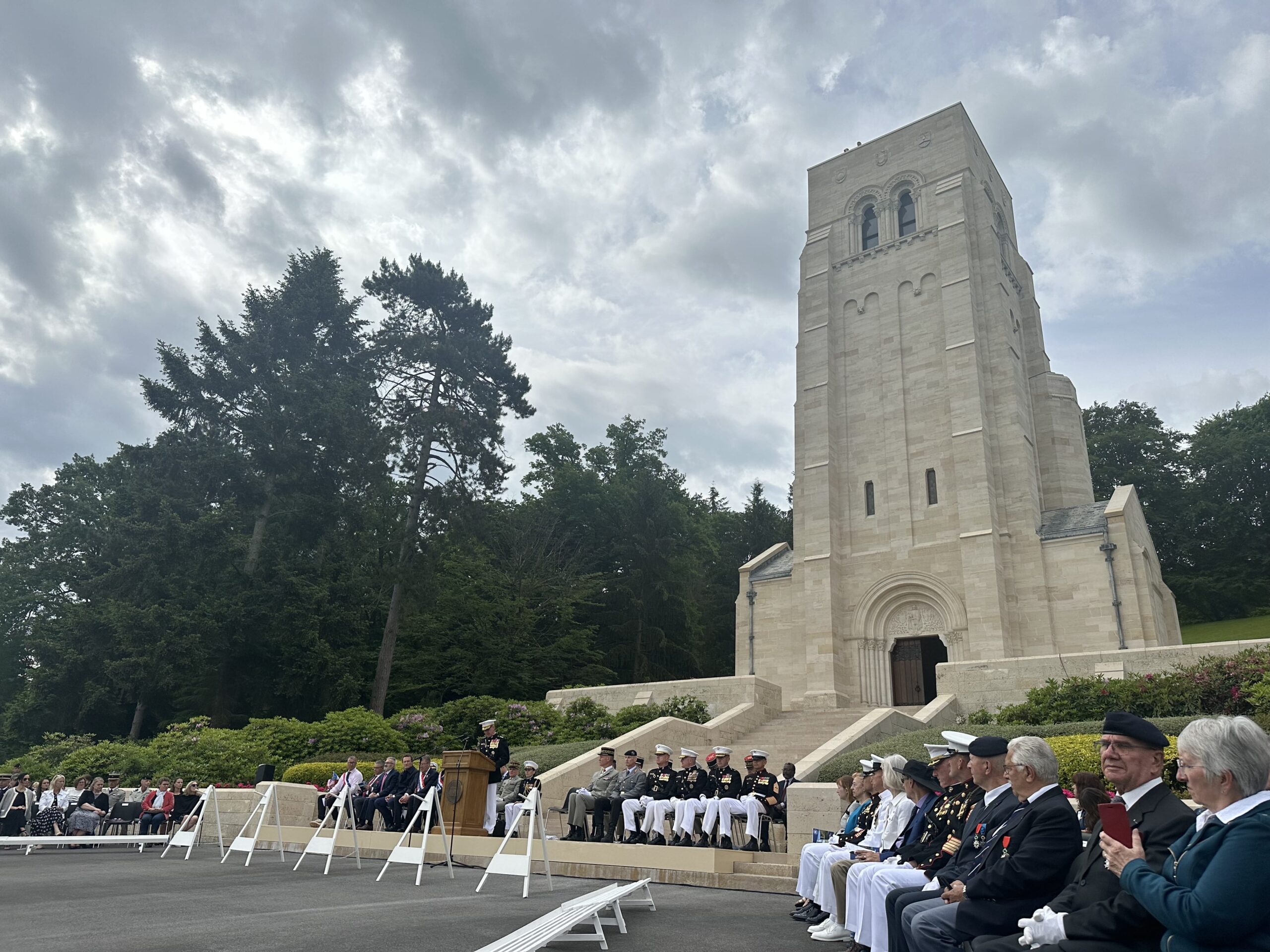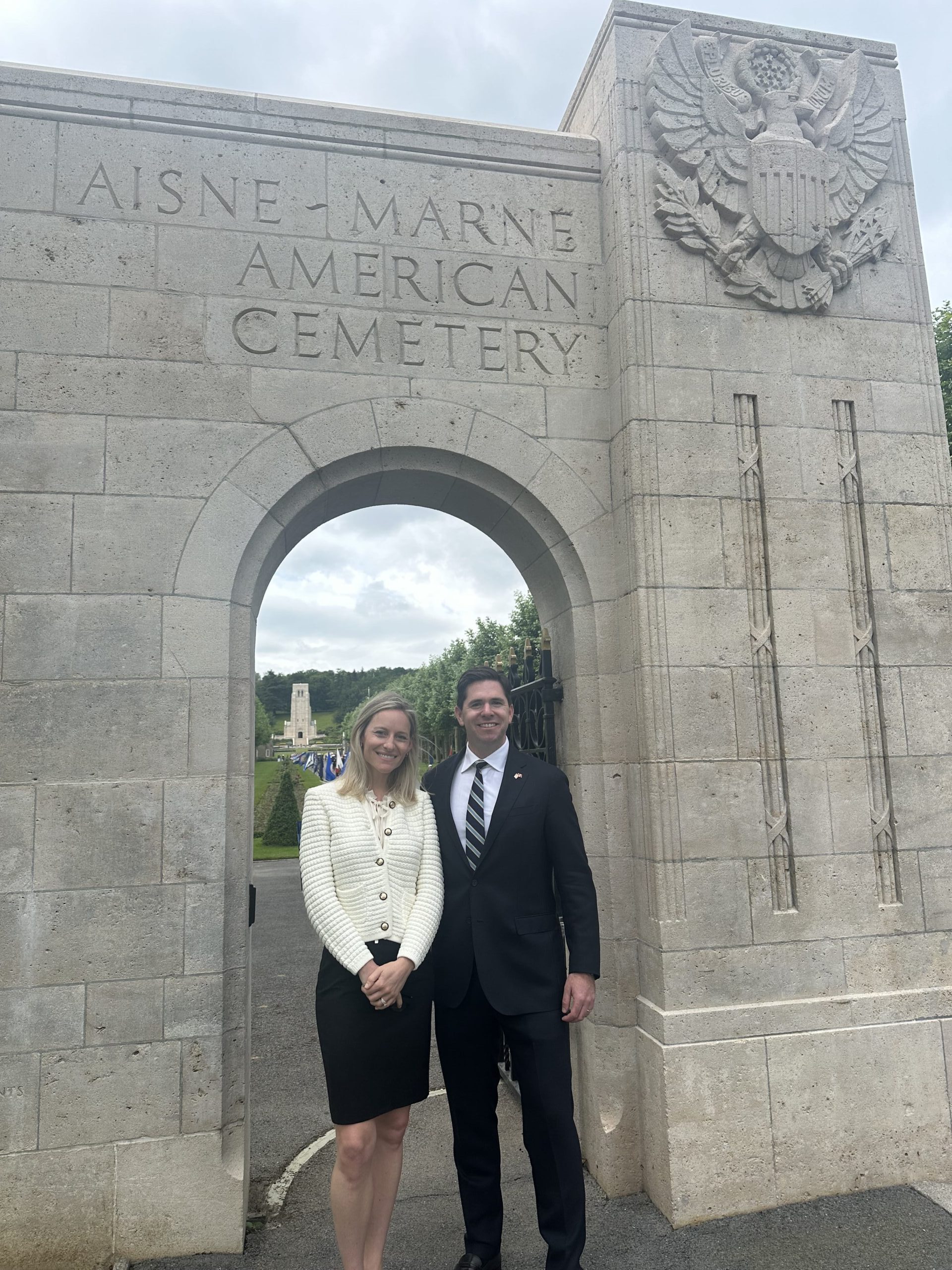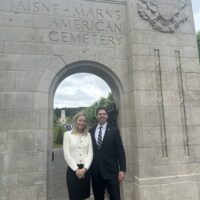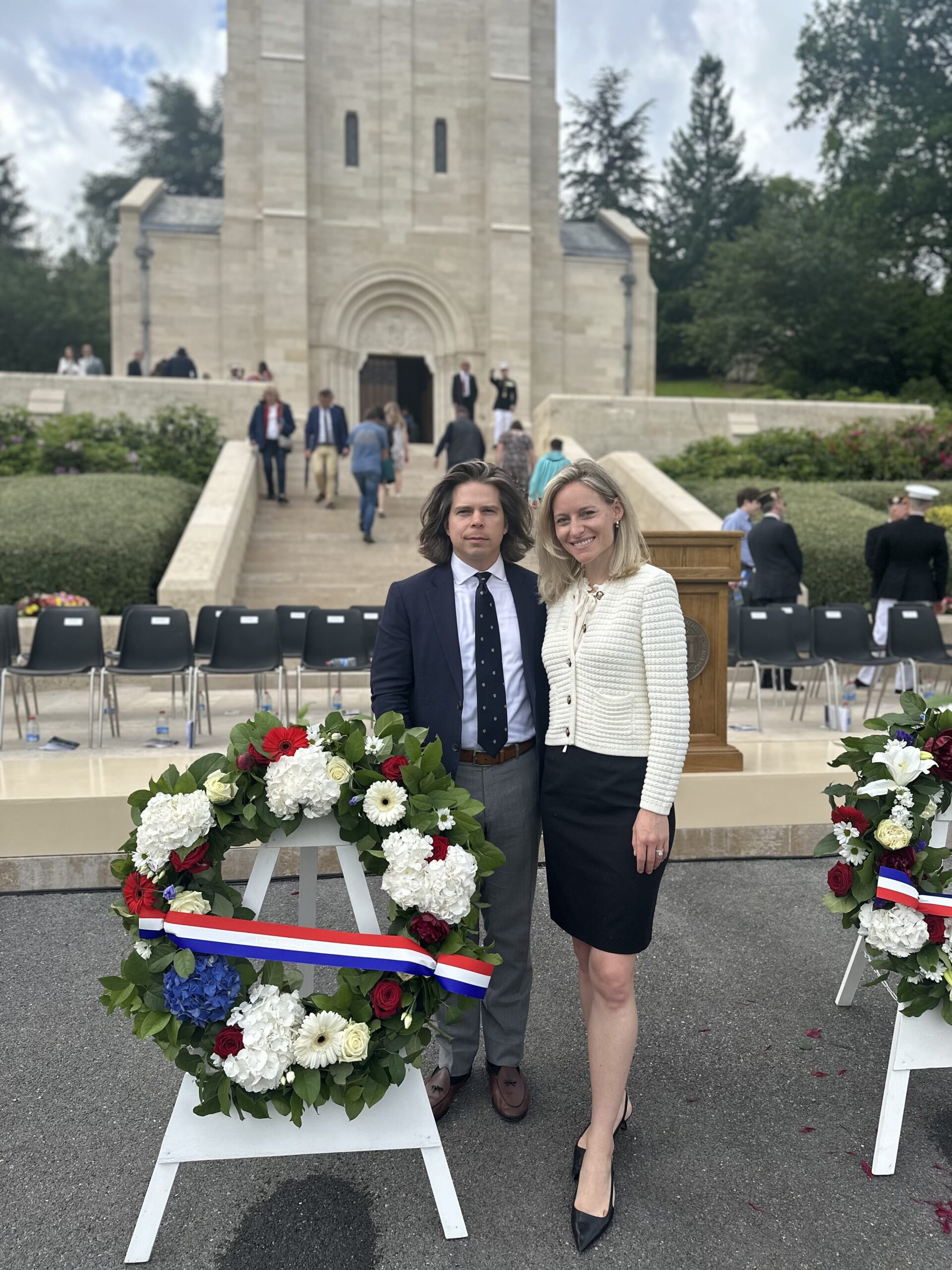 AOMDA Board Members Captain William S. Murphy, USMC, and Elizabeth Powell attended the Memorial Day service at Aisne-Marne American Cemetery on May 26, 2024.