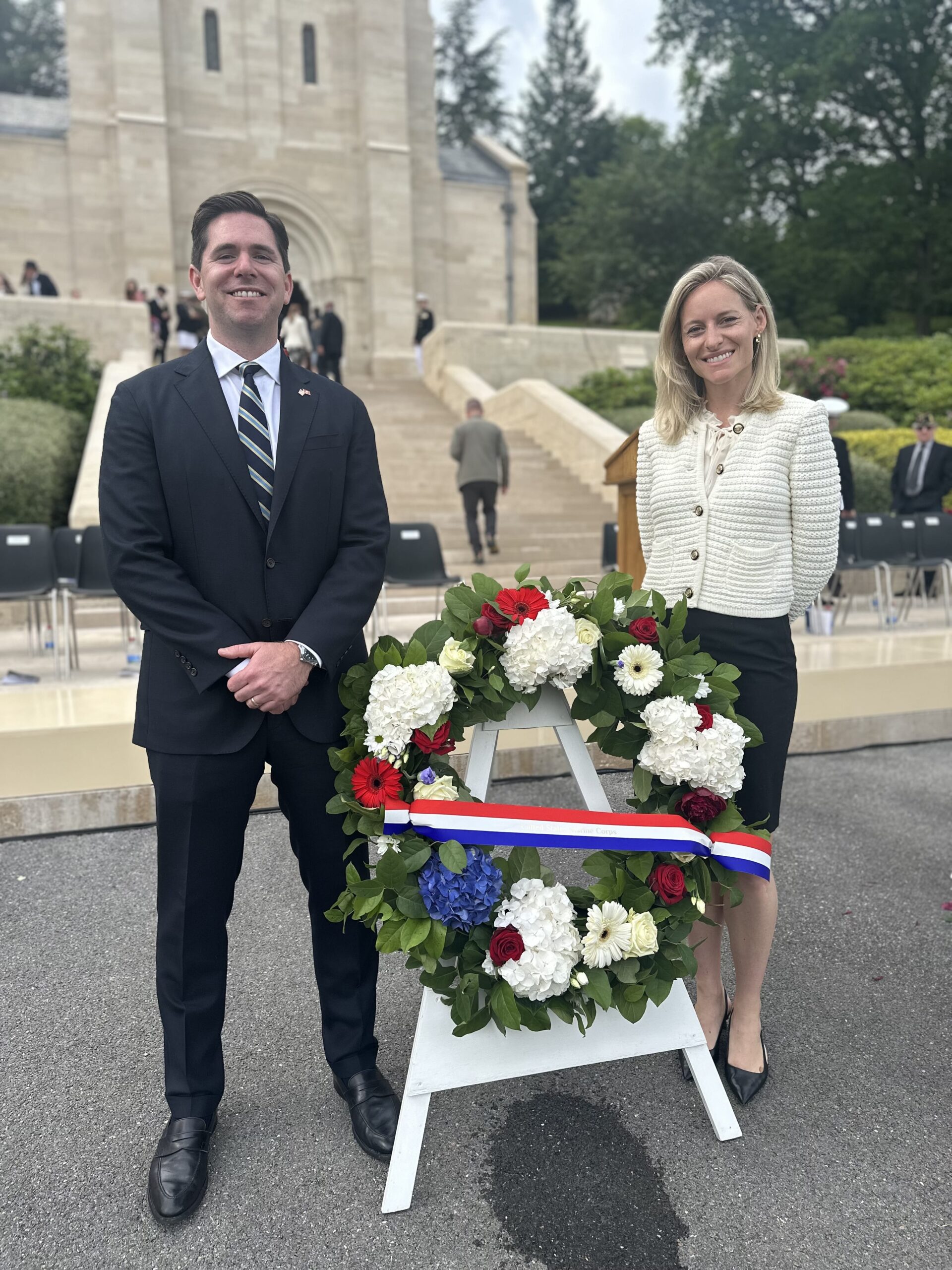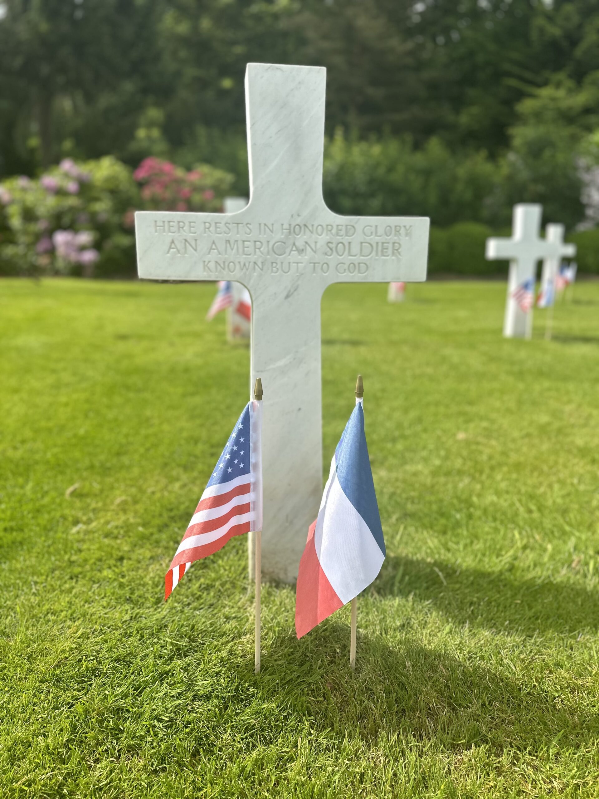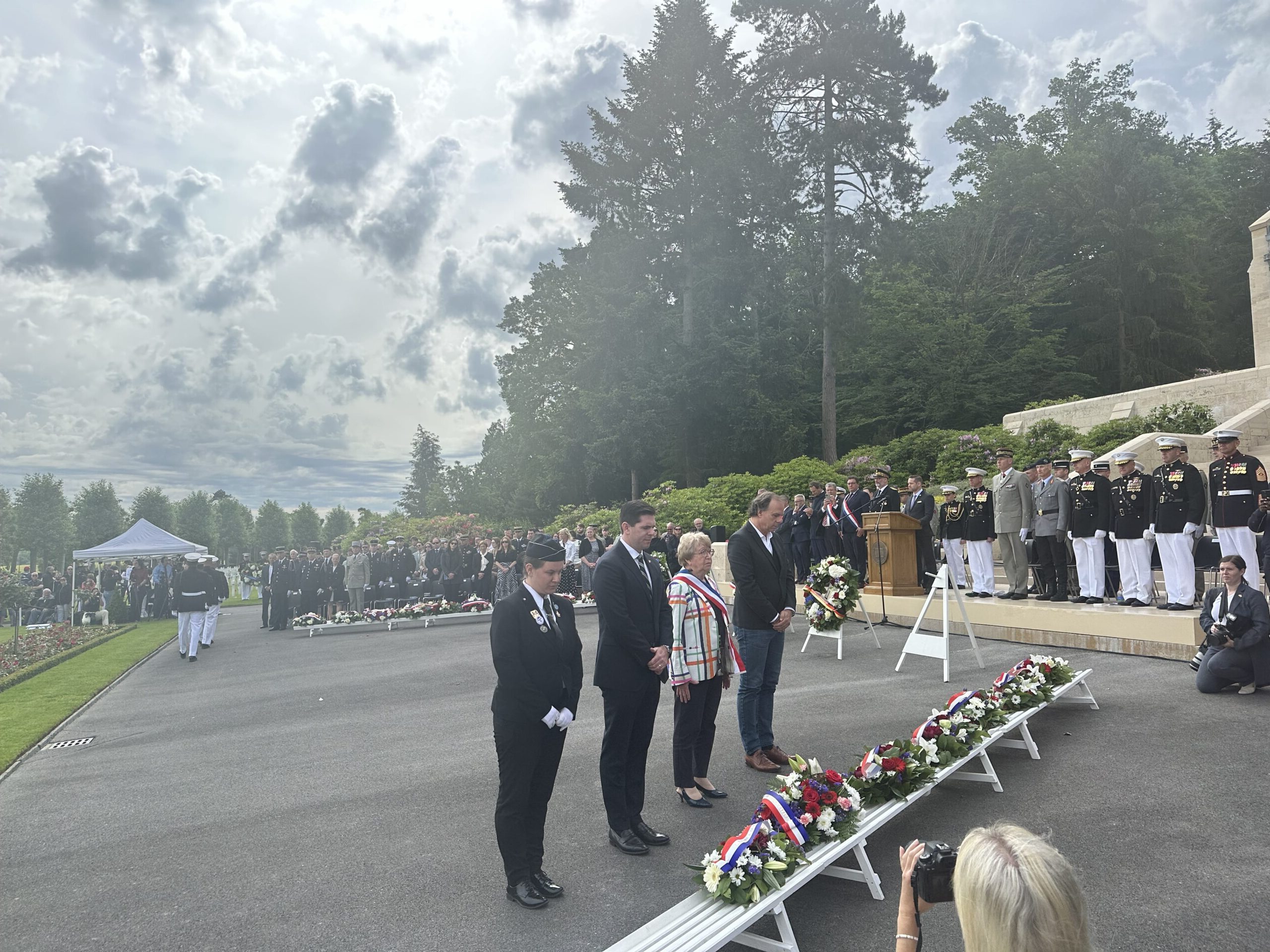 AOMDA Board Members Captain William S. Murphy, USMC, and Elizabeth Powell attended the Memorial Day service at Aisne-Marne American Cemetery on May 26, 2024.